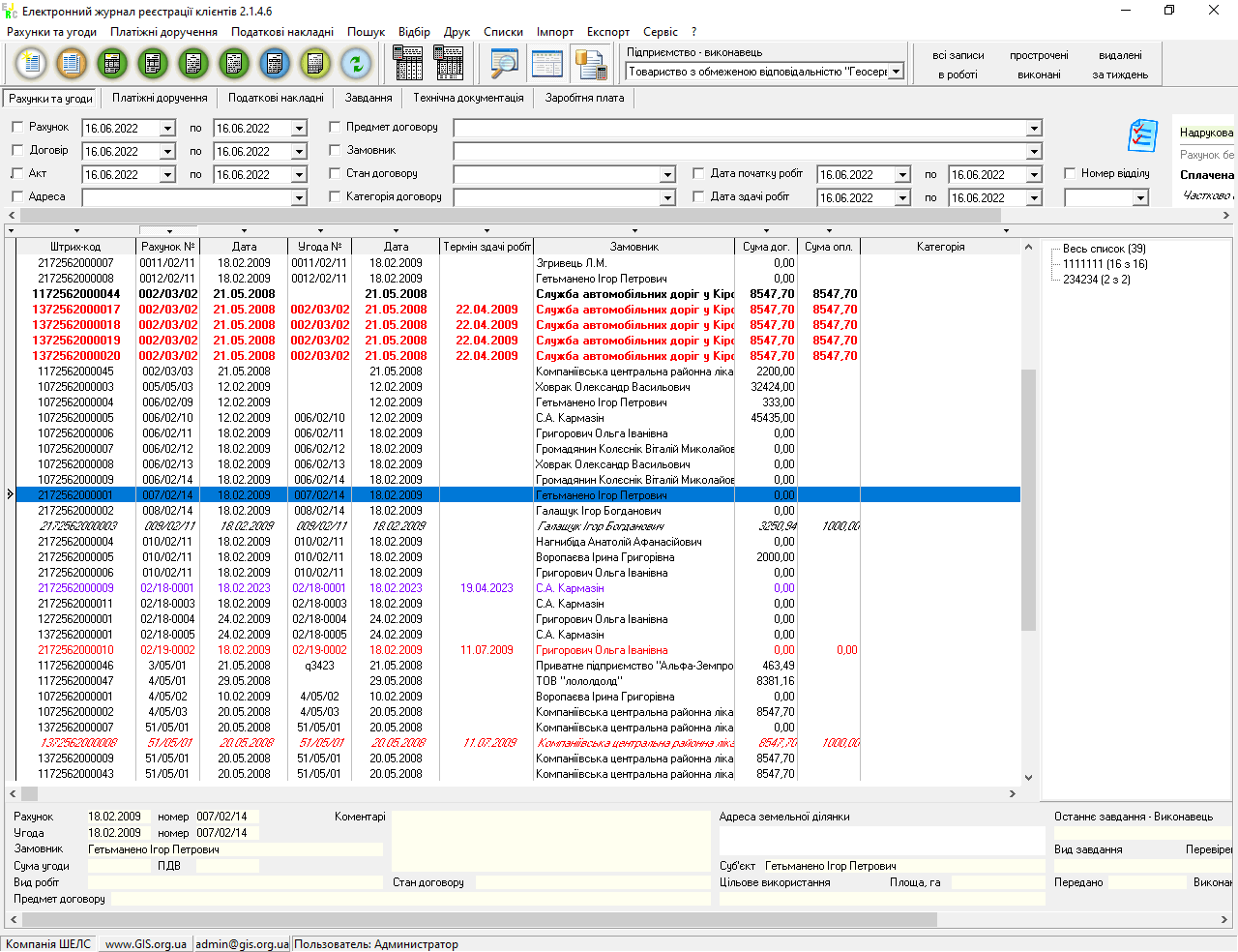 Програма дозволяє адміністратору надавати різні права доступу для окремих користувачів і проводити аналіз створення і редагування записів користувачами. Наявна функція вибору записів дозволяє відібрати дані відразу за кількома параметрами. У програмі передбачено створення звичайних номерів рахунків або потрійних, які мають крім порядкового номеру, номер місяця і відділу. Кожному рахунку присвоюється унікальний штрих-код, який можна друкувати на документах і використовувати для швидкого пошуку з використанням сканера штрих-кодів.