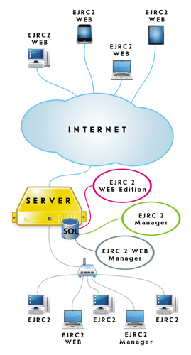 EJRC 2 - це мережева версія програми, яка представляє собою окремий реєстр, що використовує базу даних Microsoft SQL Server 2000/2005/2008. Програма EJRC 2 може використовувати загальну базу даних з програмою Геодезична Інформаційна Система 6.