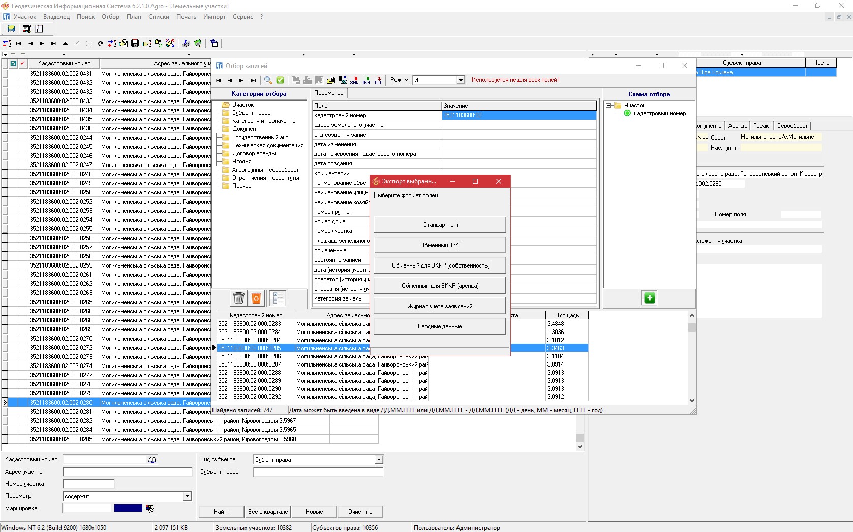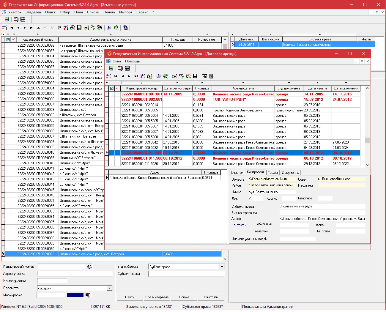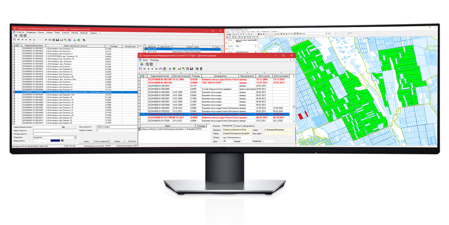 ГИС 6 Агро – сетевая версия программы для управления земельным банком агрокомпании. Программа состоит из нескольких многофункциональных модулей, которые предоставляют функционал для ведения учёта земельных участков, севооборота полей, всех видов собственности и пользования земельными участками, дают возможность следить за сроками действия договоров аренды и обмениваться информацией с внешними решениями. Расширенные аналитические и поисковые инструменты позволяют быстро найти участок, проанализировать информацию и распечатать отчёты. Встроенный картографический модуль MapDraw 2 предоставляет возможность подключения и отображения внешних растровых и векторных слоёв ArcView/ArcGis совместно с внутренними слоями: земельные участки, поля, севооборот, внутрихозяйственное устройство, почвенная характеристика, аренда и т.п. Кроме того, модуль позволяет загружать снимки с публичных картографичных серверов, таких как: Публичная Кадастровая Карта Украины, Google Map и другие. Присутствует возможность настраивать отображение земельных участков по различным параметрам, например, в зависимости от количества дней до окончания аренды. Модуль Камеральные функции предоставляет функционал для проектирования и редактирования топологии земельных участков, паевания участков по площади, стоимости или количеству собственников. В модуле Договора аренды отображается весь реестр заключенных договоров аренды и субаренды земельных участков с возможностью быстрого поиска, отбора или изменения параметров. Интегрированный модуль FastReport позволяет создавать шаблоны для формирования отчётов любой сложности и содержания.