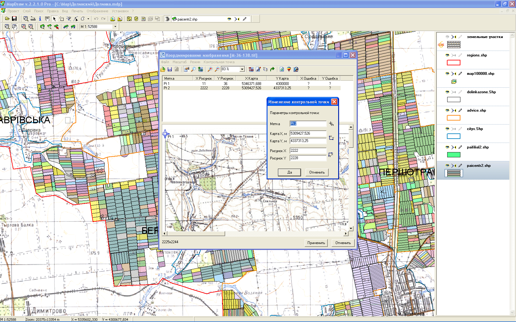 - координування растрової інформації по будь-яких точках (піксель - координата);